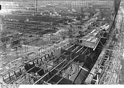 V letech 1925–1933 Deutsche Werke stavěla obchodní lodě pro civilní sektor. Po převzetí moci nacisty v roce 1933 se postupně přeorientovala na stavbu válečných lodí pro Kriegsmarine. V letech 1937–1939 byla loděnice rozšířena o třetí skluz pro stavbu plavidel.[1] Mezi nimi byl bitevní křižník Gneisenau, těžké křižníky Lützow a Blücher. Vznikala zde i nikdy nedokončená letadlová loď Graf Zeppelin.
