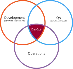 DevOps je složenina anglických výrazů Development a (IT) Operations. Je to přístup k vývoji software, který zdůrazňuje komunikaci, spolupráci a integraci mezi vývojářem a odborníky na informační technologie z provozu.[1][2] DevOps je reakcí na vzájemnou závislost vývoje softwaru a IT provozu. Jeho cílem je pomoci organizaci rychle produkovat softwarové aplikace a služby.[3][4][5][6][7]