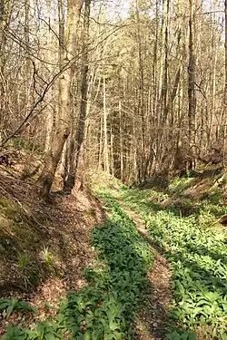 | Devil's Causeway míří k brodu přes Hart Burn | |