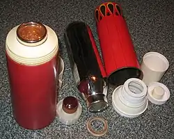 Základem termosky je dvojitá vnitřní nádoba s lesklými dvojitými stěnami, z mezery mezi stěnami obou nádob je vyčerpán vzduch. Přes toto vakuum nemůže teplo pronikat vedením, tepelné záření se odráží zpět od lesklých stěn, u nádoby uzavřené zátkou je omezen i přenos prouděním.