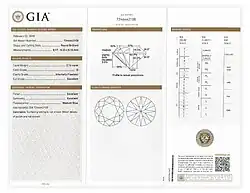 Certifikát dále popisuje veškeré výše popsané vlastnosti diamantu jako je hmotnost, barva a čistota, ale také hodnocení zpracování brusu diamantu nebo stupeň jeho fluorescence. Každý certifikovaný diamant získá během procesu hodnocení své unikátní číslo, které jej pak spojuje s vystaveným certifikátem. Díky digitálním technologiím je zpravidla možné toto číslo ověřit i online na stránkách gemologické laboratoře.
