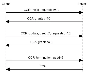 Když účastník relace spotřebuje přidělené jednotky, klient pošle na server aktualizaci oznamující kolik jednotek bylo použito a kolik jich chce nově přidělit. Klient také může požádat o jednotky před úplným vyčerpáním přidělených jednotek, aby se zabránilo pozastavení relace účastníka při komunikaci se serverem. V tomto příkladě klient pošle požadavek, když bylo spotřebováno 7 jednotek z 10; a požádá o dalších 10 jednotek, které server přidělí. Server může použít počet spotřebovaných jednotek pro odepsání ze zůstatku účastníka (přidělení jednotek neznamená, že budou použity; skutečné použití indikuje Used-Units AVP). Server také může sdělit klientovi, jak dlouho je přidělení platné; v takovém případě se očekává, že klient pošle aktualizaci, když časovač přidělení vyprší.