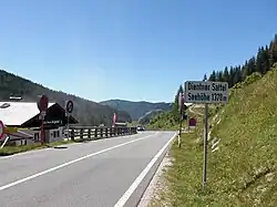 Obrázky, zvuky či videa k tématu Dientner Sattel na Wikimedia Commons - Hochkönig na koloběžkách - sjezd ze sedla po silnici do Bischofshofen