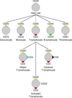 Ve většině případů jsou CD na povrchu hematopoetických buněk, ale je několik výjimek, kdy jsou CD na jiném typu buněk nebo na různých typech buněk.