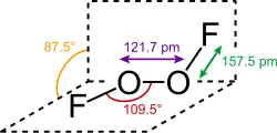 Ve fluoridu dioxygenylu má kyslík neobvyklé oxidační číslo +1. Struktura fluoridu dioxygenylu je podobná struktuře peroxidu vodíku, velkým úhlem, který se blíží 90°.