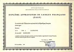 V tomto článku byl použit překlad textu z článku Diplôme d'études en langue française na slovenské Wikipedii.