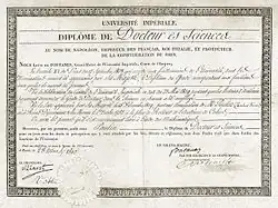 Vysokoškolský diplom je dokladem o absolvování studijního programu.[1] Tedy o určitém formálním vzdělání, resp. nabytí určité formální kvalifikace (blíže ISCED). Studijní program může být absolvován v příslušném studijním oboru, nebo patří do příslušné oblasti vzdělávání. Vysokoškolský diplom obsahuje označení dané vysoké školy i uděleného titulu apod. Zpravidla je vydáván při slavnostním akademickém ceremoniálu (promoci). Spolu s ním může být také vydáván dodatek k diplomu (diploma supplement), který obsahuje vícejazyčné a podrobnější údaje o absolvovaném studijním programu (výpis všech zkoušek a zápočtů včetně hodnocení) a který díky tomu přispívá k uznání získané kvalifikace na mezinárodní úrovni. Oba doklady získané v ČR jsou opatřeny státním znakem České republiky.[2]