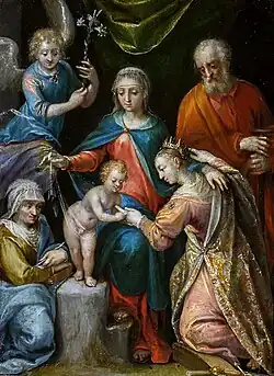 Obrázky, zvuky či videa k tématu Dirck de Quade van Ravesteyn na Wikimedia Commons - Národní galerie v pražském šternberském paláci představuje nově nalezený poklad rudolfinského manýrismu - madonu s dítětem a s muzicírujícími anděly - Dirck de Quade van Ravesteyn - Madona s dítětem a s muzicírujícími anděly, 1606-1608