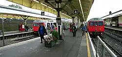 Větve Richmond a Ealing se spojují na západním konci stanice Turnham Green.