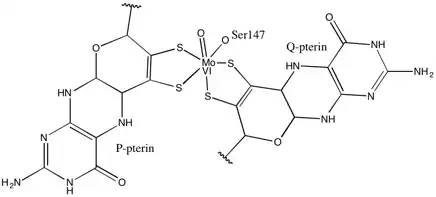 Většina molybdenových a wolframových proteinů má v aktivních místech dithiolenové komplexy s molybdopterinovými kofaktory, na které je navázán Mo nebo W.[4]