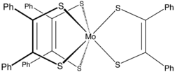 - Mo(CO)6 + 3 (CF3)2C2S2 → [(CF3)2C2S2]3Mo + 6 CO