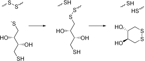 - ↑ CLELAND, W. W. Dithiothreitol, a New Protective Reagent for SH Groups *. Biochemistry. 1964-04-01, roč. 3, čís. 4, s. 480–482. Dostupné online [cit. 2023-08-24]. ISSN 0006-2960. doi:10.1021/bi00892a002. (anglicky)