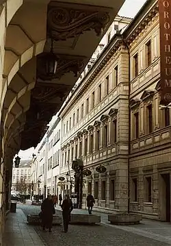 Průčelí Kolowratského paláce, v jehož podkroví divadlo Kolowrat sídlí | |