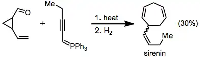 Při syntéze racemického sireninu se potřebný divinylcyklopropan vytváří Wittigovou reakcí; cílová molekula poté vzniká hydrogenací produktu přesmyku.[20]