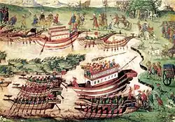 ![]() Alegorie turecké války – vyhlášení války před Konstantinopolí | |||