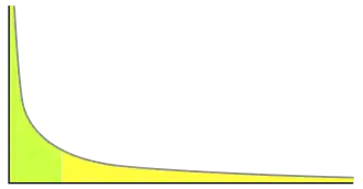 - Opačná část grafu, než je dlouhý chvost, s kvantitativně malým počtem výrobků, které jsou ovšem celkově nejúspěšnější a představují oněch 80 % obratu, se nazývá hlava (grafu). Výrobky v této části grafu jsou nazývány hity (myšleno jako terminus technicus).