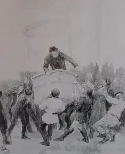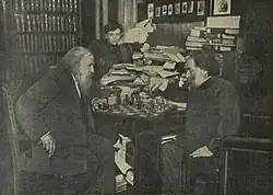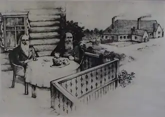 D.I.Mendělejev a N. Vereščagin na farmě v Jedimonovu (1889) Kresba V.I.Blandov