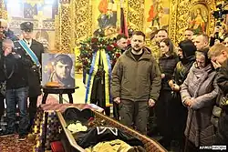 Hlavní ceremonie se ale odehrála 10. března 2023 v Kyjevě za účasti tisíců lidí a řady vysoce postavených smutečních hostů, včetně prezidenta Volodymyra Zelenského, finské premiérky Sanny Marin, ukrajinského ministra obrany Oleksije Reznikova, velitele Hlavního ředitelství rozvědky ministerstva obrany Ukrajiny Kyryla Budanova a náčelníka generálního štábu Valeryje Zalužného.[29][30] Zádušní mše se konala v chrámu sv. Michala, kde prezident Zelenskyj také předal matce padlého vojáka vyznamenání Kříž za vojenské zásluhy.[31]
