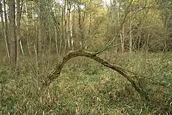Z celkové rozlohy přírodní památky 0,74 ha připadá na lesní porost, z čehož nadpoloviční většina je tvořena borovicí lesní (Pinus sylvestris) o stáří přes 40 let.[13][16] Borovice totiž jako jediná původní dřevina rostoucí v České republice je schopna odolávat toxicitě hadcového podloží.[5] Na nelesních plochách se dařilo slivoni trnce (Prunus spinosa) jakožto výsledku ruderalizace.[17] Taktéž vlivem eutrofizace a nevyužívání lokality dochází postupně k rozšiřování potoční rákosiny podél potoka.[17] Oblast nivy postupně zarůstá vyjma rákosiny i tužebník jilmový (Filipendula ulmaria).[5]