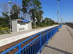 Nachází se zde dvě nekrytá jednostranná úrovňová nástupiště, k příchodu na nástupiště č. II (u koleje č. 1) slouží přechod přes kolej č. 2.[1] Do stanice je napojena vlečka směrem k centru města.