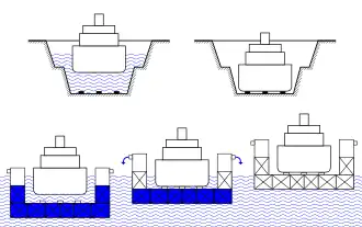 Plovoucí dok je velké, obvykle ocelové plavidlo s trupem ve tvaru žlabu a s velkými vodními komorami. Když se komory naplní, plavidlo klesne tak, že do něj loď může vplout. Vyčerpáním vody z komor se dok vynoří z vody a loď dosedne na podpěry na jeho dně. Musí být ovšem pečlivě vyvážena, případně podepřena i ze stran.[1]