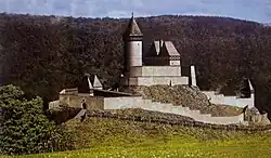 Níže položená část hradního jádra stála již ve druhé polovině 16. století. Její dominantou je částečně dochovaná věž, jejíž podoba je výsledkem památkových úprav z devadesátých let 20. století. Archeologický výzkum v prostoru věže doložil metalurgickou dílnu z přelomu 14. a 15. století určenou pravděpodobně ke zpracování olova.[5]