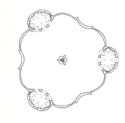 Hřbitov byl vybudován jako centrální útvar a to tak, že je v jeho půdorysu zdůrazněno číslo tři jako odkaz na Nejsvětější Trojici. Původně se skládal z trojice shodných oválných kaplí, jejichž středy byly umístěny v rozích pomyslného rovnostranného trojúhelníka. Jižní kaple funguje též jako vstup. Mezi jednotlivými kaplemi probíhá křivkově – konvexně-konkávně tvarovaná hřbitovní zeď.[4] Po pozdějším rozšíření půdorys začal lehce připomínal tvar lebky, což však nebylo původním Santiniho záměrem.