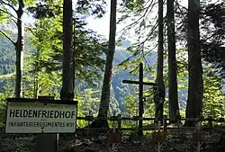 ![]() Pozůstatky opevnění z první světové války na vrcholu Kleiner Pal/Pal Picolo na rakousko-italské hranici, kde spolek Dolomitenfreunde buduje muzeum pod širým nebem | |