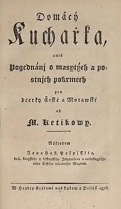 - ↑ a b NEČASOVÁ, Denisa. Magdalena Dobromila Rettigová: Slavná kuchařka, či první feministka?. www.stoplusjednicka.cz [online]. 2021-08-19 [cit. 2021-11-22]. Dostupné online.