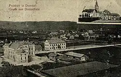 První německý název města byl ve 12. století zaznamenán jako Domsselsdorf, v roce 1490 se objevuje název Dumsel a roku 1558 potom Damschale. Současný název vznikl poslovanštěním původního.