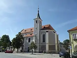 - Kostel Zvěstování Panně Marii (U Svatých) – původně farní kostel pro venkovské obce. U kostela je tzv. malá fara. Založen počátkem 14. století, opraven po požáru roku 1648. V těsné blízkosti kostela stával kostel svatého Jakuba a odtud se říká kostelu „U Svatých“.