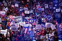 Donald John Trump (* 14. června 1946 New York) je americký republikánský politik, podnikatel a miliardář sloužící coby 45. a 47. prezident Spojených států amerických v letech 2017–2021 a od roku 2025. Jeho prezidentství charakterizuje zaměření se na obchod a na konzervativní hodnoty, silně konfrontační styl politiky a požadavek loajality.[4][5]