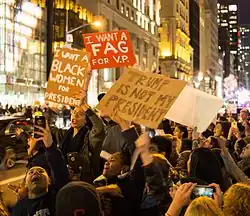 - ↑ Trump recorded having extremely lewd conversation about women in 2005. Washington Post [online]. [cit. 2017-01-23]. Dostupné online.