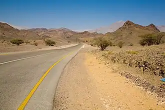 Silniční doprava patří k rozvinutějším způsobům dopravy v zemi a silniční komunikace propojují zdejší vesnice a města. Jezdí se vpravo. Hlavní komunikace se nacházejí mezi hlavním městem Maskat a Suhárem a mezi Maskatem a Salálou, jež leží v nejjižnějším regionu země – Dafáru. Kvalita silnic na těchto komunikacích dosahuje nejvyšší úrovně v zemi. Celková délka vozovek činí 68 467 kilometrů.[1] Nezpevněné vozovky tvoří 30 207 kilometrů a zpevněné 23 223 kilometrů, z čehož 1 384 kilometrů spadá na dálnice.[1]