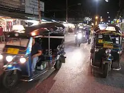 Mezi další možnosti dopravy v Thajsku patří tuk-tuky, taxíky (v listopadu 2018 jich bylo celostátně registrováno 80 647)[24], dodávky (minibusy) a songthaewy (minivany s otevřenou korbou a lavicemi k sezení).[1]