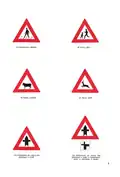 - výstražné značky (11 značek, včetně 6 značek zavedených již v roce 1935)