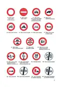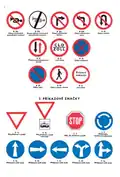 - značky vyjadřující dopravní zákazy a příkazy (19 značek)