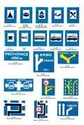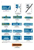 Směrová tabule pro příjezd k dálnici (č. 111a, 111b), Směrová tabule pro příjezd k silnici vyhrazené pro provoz motorových vozidel (č. 112a, 112b), Křižovatková předzvěst (č. 113), Odbočovací předzvěst (č. 114), Návěst před křižovatkou (č. 115a, 115b), Směrová tabule pro odbočení (č. 116a, 116b), Dálková návěst (č. 117a, 117b), Kilometrovník (č. 118).