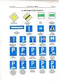 Nová černobílá značka D 37a Směrová tabule k místnímu cíli. Nová varianta směrové šipky pro objížďku (se slovním uvedením směru, D 44c). "Zvláštní značky" s označením F začleněny do sekce informativních (D). Dosavadní značka F 5a Zakázané stání nahrazena podobnou značkou D 48a Zóna s dopravním omezením (D 48b konec). Zavedeny nové značky D 49a Obytná zóna (D 49b konec), D 50a Pěší zóna (D 50b konec).