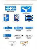 Všechny směrové značky na dálnicích a silnicích podobné povahy jako dálnice (tedy silnicích vyhrazených pro provoz motorových vozidel) byly zavedeny v bílém provedení na modrém podkladě, aby se odlišily od ostatních silnic, pro které toto značení bylo ve žlutém provedení na modrém podkladě.