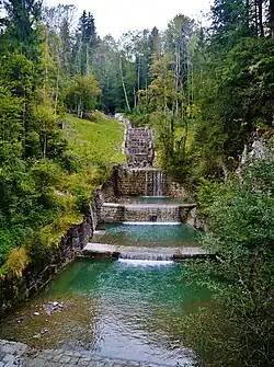 - ↑ Wasser in Vorarlberg. Wissenswertes über den wichtigsten Bodenschatz des Landes. Archivováno 25. 2. 2018 na Wayback Machine. (PDF; 2,4 MB) In: Website des Landes Vorarlberg. Amt der Vorarlberger Landesregierung, Abteilung Wasserwirtschaft, 2016, S. 16, abgerufen am 25. Februar 2018.