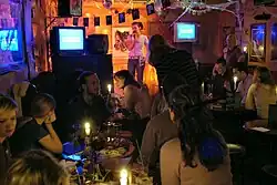 Záběr během představení v divadle; později zesvětleno v GIMPu -