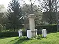 - Litinový kříž na návsi na pískovcovém stylobatu z roku 1835, obnovený roku 1924[8]