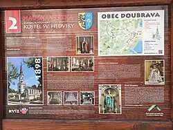 Informační panel 2 – Římskokatolický kostel svaté Hedviky Slezské, který je zdejší architektonická památka. U kostela je také malá novodobá dřevěná zvonice v Doubravě.
