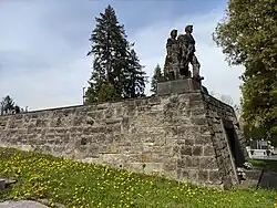 Informační panel 3 – Památník důlních neštěstí (Pomník horníkům), který připomíná tragické události na místním bývalém dole Doubrava.
