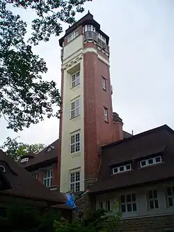 První dřevěná rozhledna zde stála od roku 1845, ta však po 12 letech shořela. Jako náhrada za ní byla postavená kamenná rozhledna roku 1862. Byla vysoká 20 m a měla 78 točitých schodů. V roce 1878 byla přistavěna kavárna pro návštěvníky. Kvůli dezolátnímu stavu ji město v roce 1904 nechalo strhnout a postavit novou.[3] Nová rozhledna byla postavena v roce 1905 dle architekta Ludwiga Schefflera. Po roce 1945 byla přejmenována na Gottwaldovu vyhlídku. Za dob socialismu sloužila jako školicí a rekreační středisko Klementa Gottwalda. V roce 1995 byl objekt prodán soukromníkovi ruského původu, který zde po rekonstrukci v roce 1997 otevřel hotel Aberg. V roce 2000 byl poblíž rozhledny vybudován ruský kostelík sv. Nikolaje.[4][5]