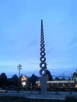 V říjnu 2012 byl v rámci veřejného uměleckého programu ve Vancouveru postavena 60 metrů vysoká „Nekonečná pneumatika“, která doprovázela otevření kanadského obchodu s pneumatikami. Konstrukce byla spojena s konceptem „Nekonečného sloupce“ rumunského umělce Constantina Brâncușiho.[1]