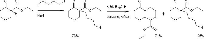 - ↑ A new tributyltin hydride-based rearrangement of bromomethyl .beta.-keto esters. A synthetically useful ring expansion to .gamma.-keto esters Paul Dowd, Soo Chang Choi; Journal of the American Chemical Society; 1987; 109(11); 3493–3494. doi:10.1021/ja00245a069