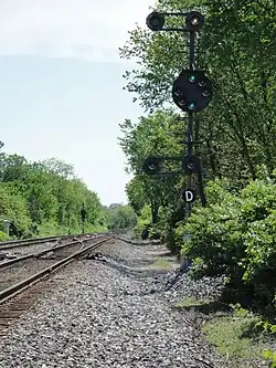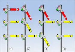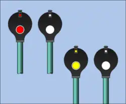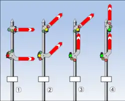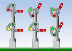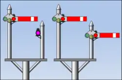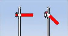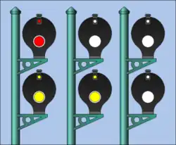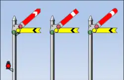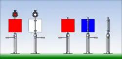 • vpravo: návěstidlo pro levou kolej (hlavní trať) a pro pravou kolej (vedlejší trať)