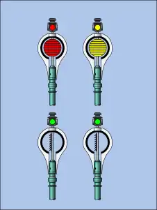 • červená: stůj • žlutá: výstraha • zelená: volno